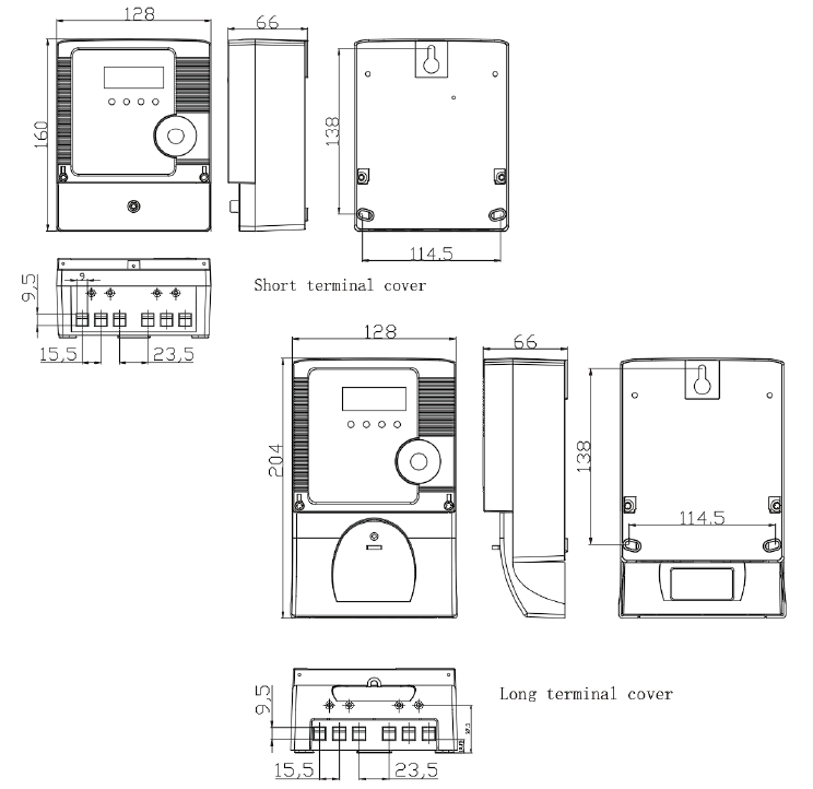 Dimensions(mm): 160*128*66(short terminal cover) or 204*128*66(long terminal cover)