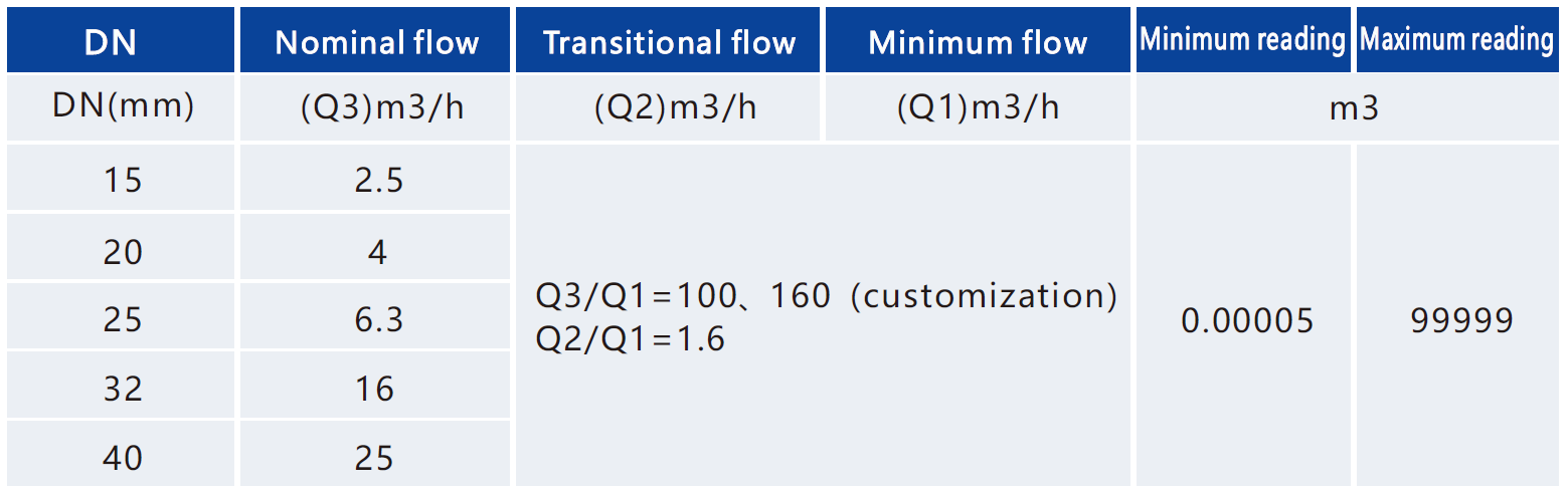 This product is a rotor type multi-jet water meter, used to measure and control the volume of drinking cold water flowing through the tap water pipeline. The selected materials meet the sanitation standards of drinking water metering instruments and conform to ISO4064:2014 and other standards.The water meter can support DCU for data reading and setting. DCU communicates with the water meter through RF and NB-IoT channels, and the data collected can also be connected to the customer system through NB-IoT and LoRaWAN. The company's system can also be used for meter reading and management functions.